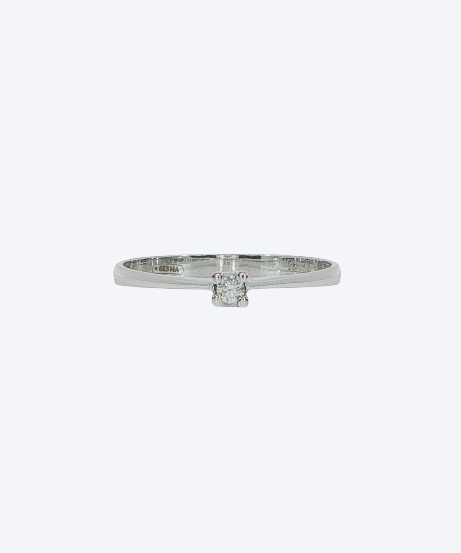 Minimalist and refined, this polished ring is crafted from 18KT white gold and set with a single natural diamond D1 totaling 0.03cts. The sleek, high-shine finish enhances the stone’s delicate sparkle, making it a subtle yet meaningful piece—ideal for everyday elegance, stacking, or as a promise ring.