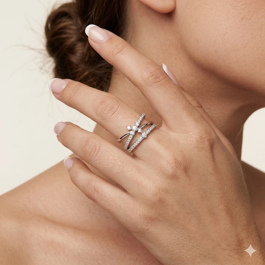This Diamond Crossover Ring is perfect for those seeking a statement piece that transitions seamlessly from elegant daywear to refined evening glamour. Its unique silhouette symbolizes unity and style, making it a meaningful addition to any luxury jewellery collection.