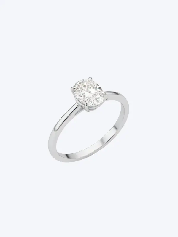 This exquisite 18KT white gold ring features a brilliant 1.07-carat oval-cut lab-grown diamond. Certified by IGI Report No. 660487802 with a VS1 clarity grade, this piece showcases exceptional purity and fire. The elongated oval silhouette and the cool luster of 18KT white gold combine to create a sophisticated, modern aesthetic—perfect for a timeless engagement ring or a refined luxury gift.