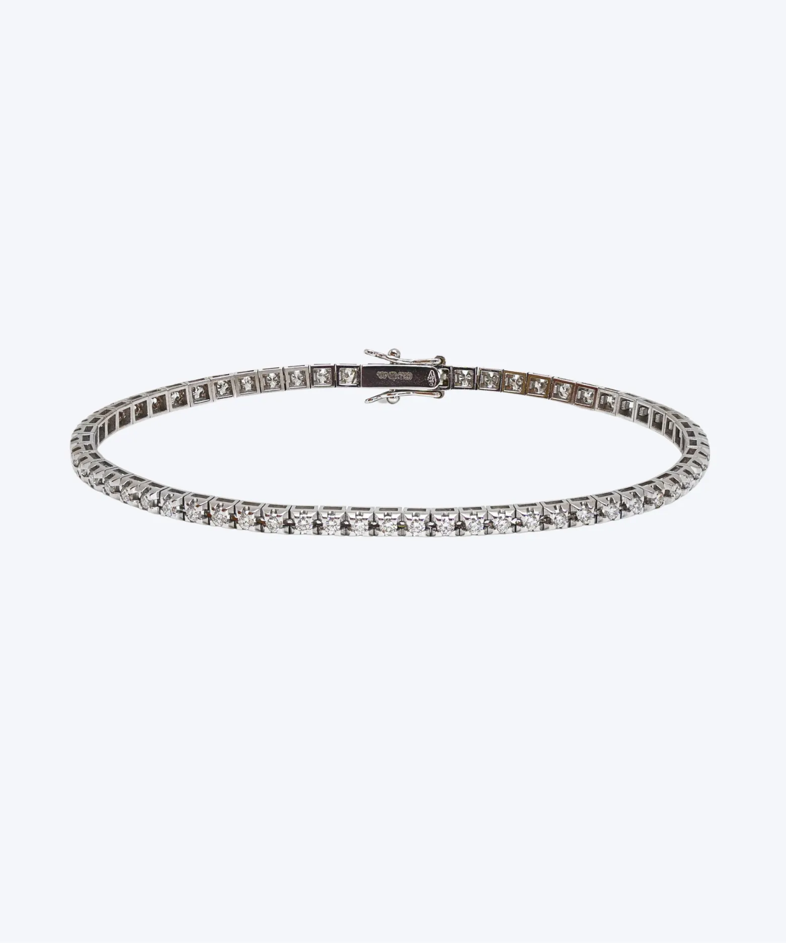 Elevate your look with this elegant 18KT white gold diamond tennis bracelet, set with 57 brilliant diamonds totaling 1.39 carats. Designed in an 18 cm length, it delivers a seamless, refined sparkle—ideal for special occasions or as a polished everyday staple in your jewelry collection.