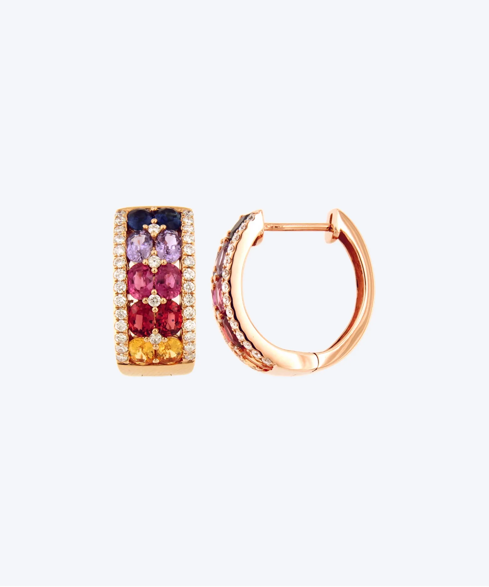 Add a touch of timeless elegance and vibrant charm to your collection with these exquisite 18KT Rose Gold Earrings, meticulously crafted to shine with sophistication. Featuring 0.60 carats of natural G-color diamonds paired with 4.07 carats of multi-colored gemstones, these earrings offer a dazzling interplay of brilliance and color.