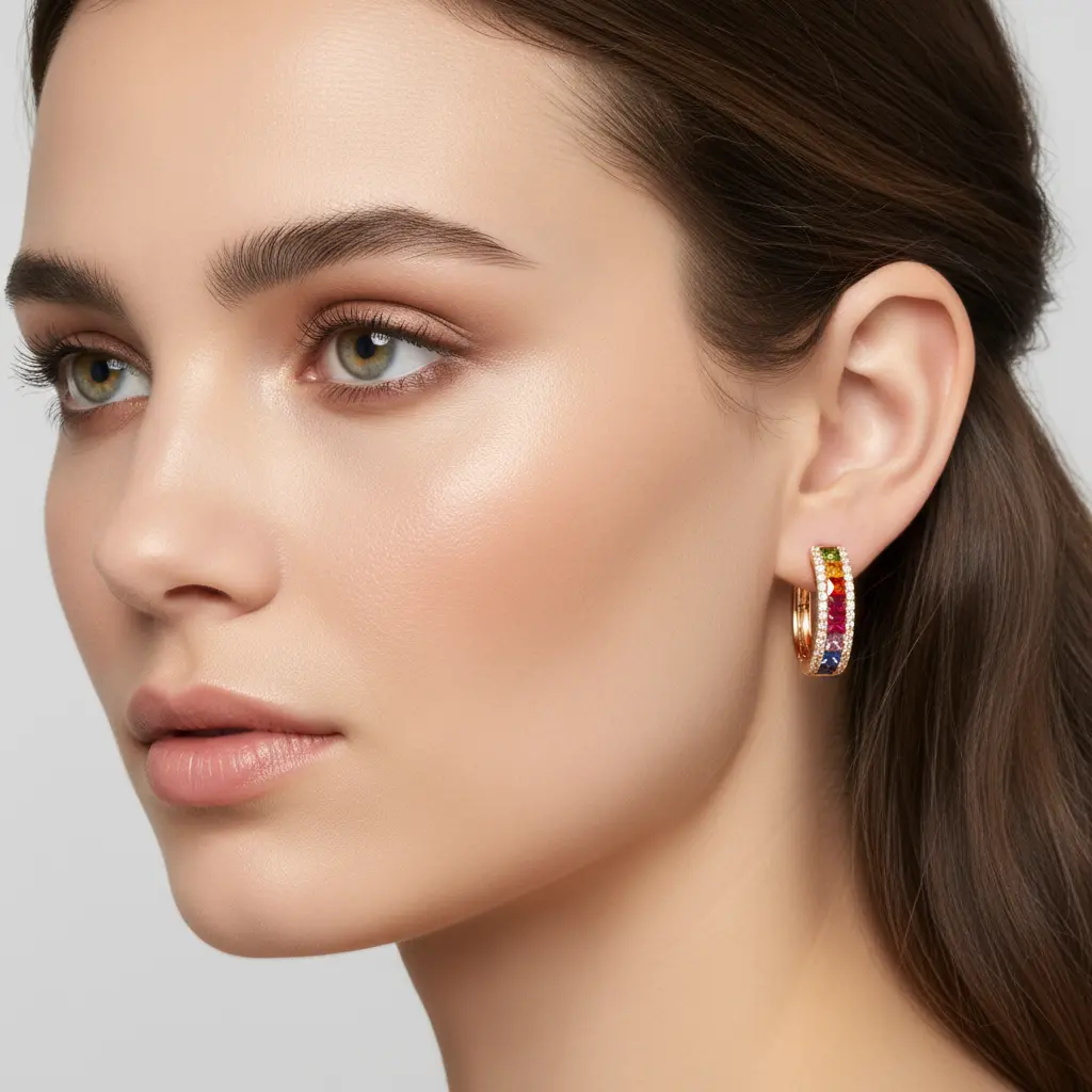 Elevate your jewelry collection with these stunning Natural Diamond Multi-Gemstone Earrings, crafted in luxurious 18KT gold. Featuring 0.60 carats of G-color natural diamonds paired with 2.35 carats of vibrant multi-colored gemstones, this piece exudes both brilliance and charm.
