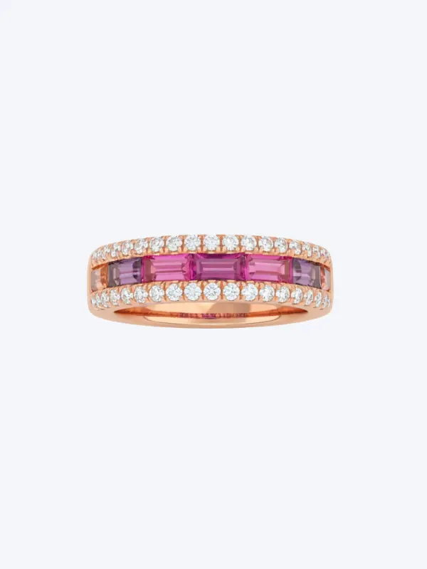 Rainbow Sapphire Diamond 18KT Rose Gold Band